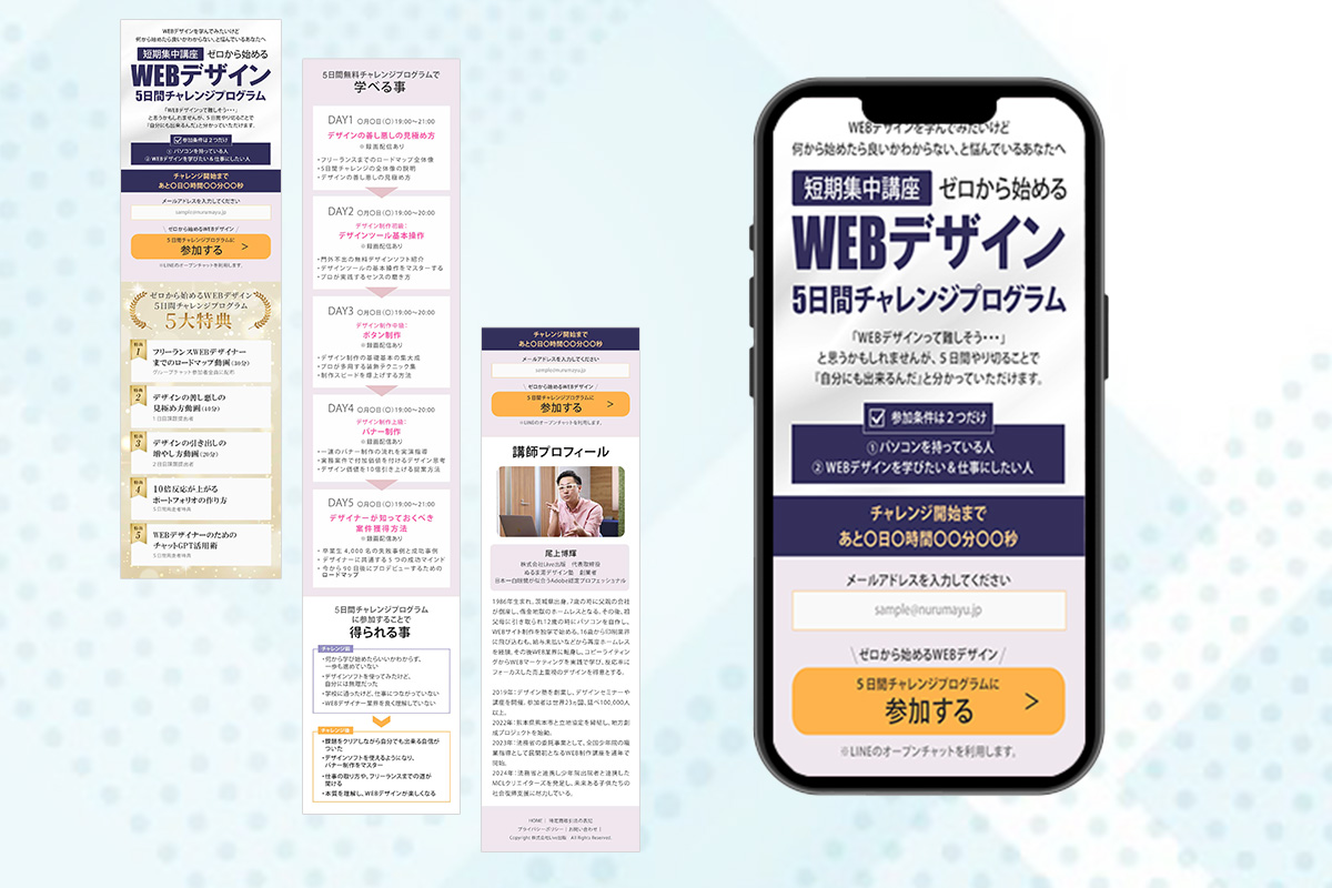・カリキュラム5日間無料体験申し込みへの誘導(申込者には入塾へのご案内予定)